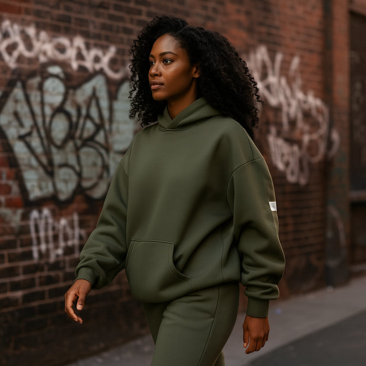 Check out stylish shots of our unisex hoodie at play—from coffee runs to evening walks. Experience how the drop shoulder design and soft cotton blend transform everyday outfits.
